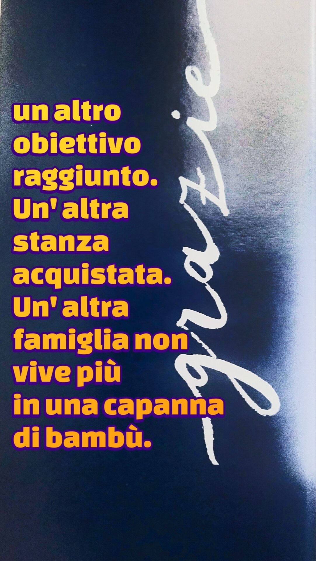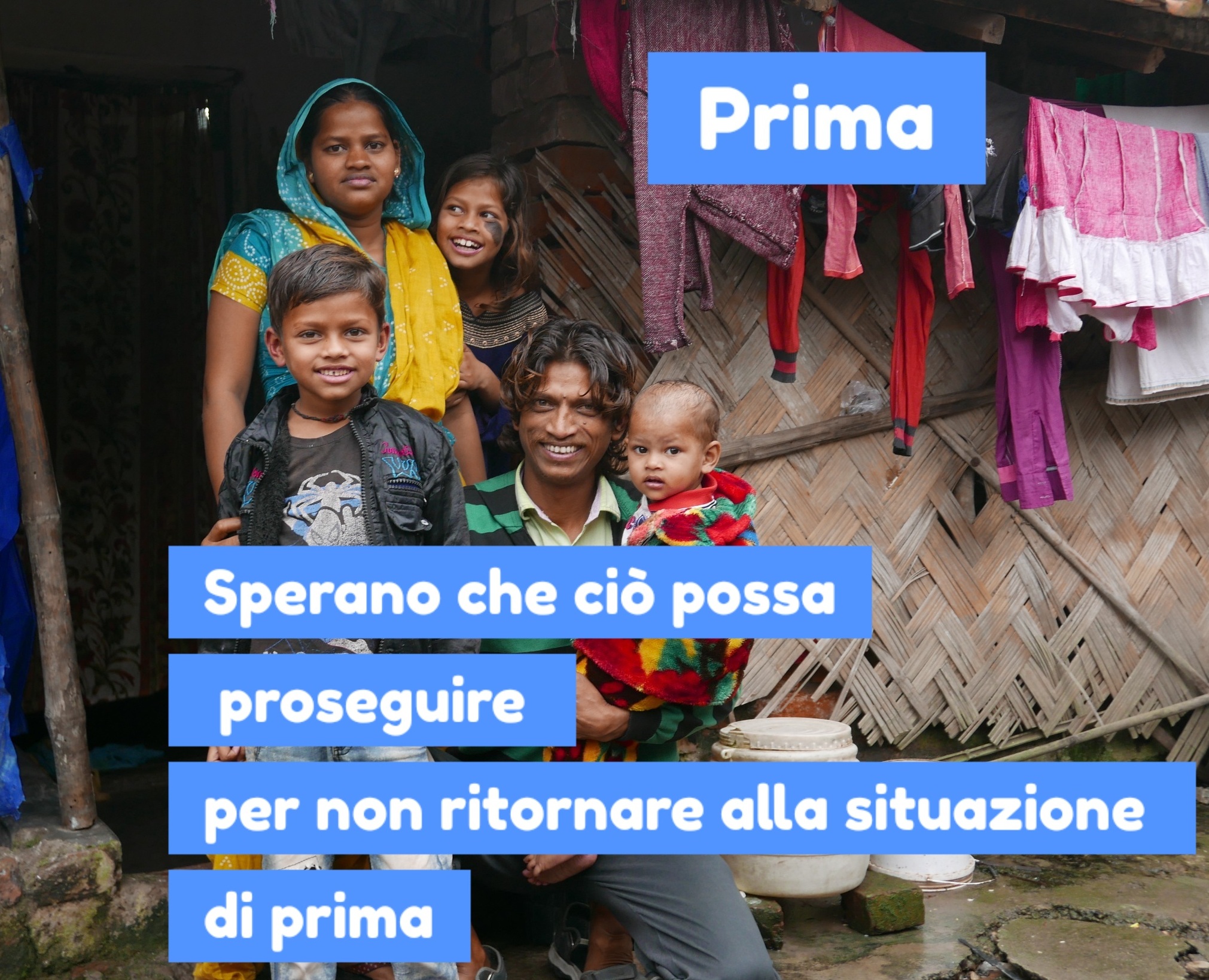 Lungo la strada che percorrevo tutti i giorni per andare da Casa Madre al centro per poveri Prem Dan delle Missionarie della Carità per prestare servizio di volontariato, ho avuto un fantastico incontro con due bambini, Hena e Sunny che con la loro mamma cercavano di sopravvivere e avevano come casa un pezzo di marciapiede. Da quel momento è nata una grande amicizia e in seguito grazie all’aiuto di persone presenti con il cuore 5 famiglie hanno iniziato a sorridere, perchè erano ai margini della società e invece adesso possono sognare  un futuro migliore e sperare per i loro figli. Continuiamo a sostenerle ed aiutiamo tante altre famiglie che vivono nell’indigenza. GRAZIE
